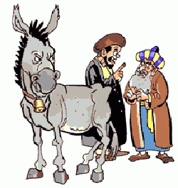 Tetapi Timur Lenk berkata, "Ajari keledai itu membaca. Dalam dua minggu, datanglah kembali kemari, dan kita lihat hasilnya!"