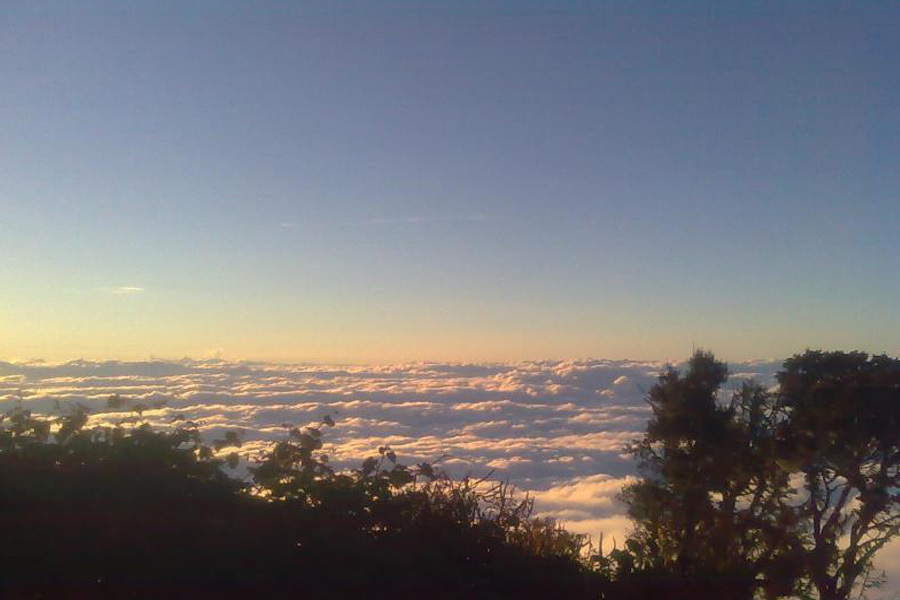 Rasa lelah setelah pendakian akan terbayar ketika sampai di puncak. Dari puncak Gunung Cikuray terlihat lapisan awan bagai permadani yang mempesona. Tak heran jika sering disebut sebagai Negeri di Atas Awan.
